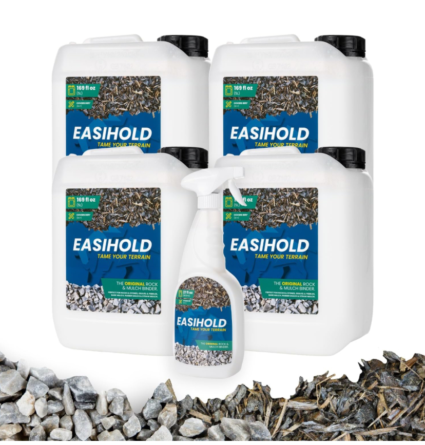 Ready to use and more affordable than hiring a landscaper, Easihold is the ideal gravel and mulch binder for your garden, decorative flower beds, plant pots, tree bases, and the spaces between pavers and steps.