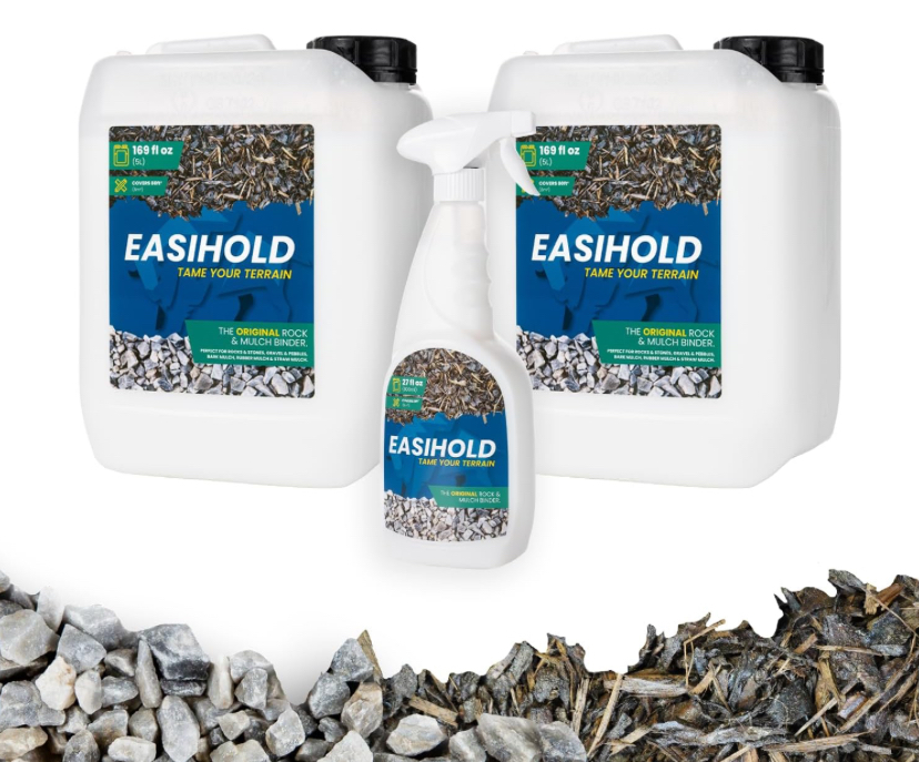 Easihold is made to keep your gravel and mulch firmly in place. Apply the ready-to-use binder and let it dry for 72 hours in warm, dry conditions (10°C+).
